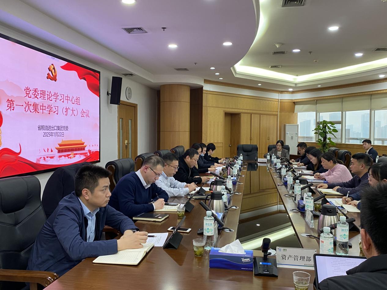 1月22日,省糧油進出口集團黨委理論學習中心組召開2025年第一次集中學習(擴大)會議,傳達學習中國共產(chǎn)黨湖北省第十二屆委員會第八次、第九次全體會議精神。會議由集團黨委書記、董事長孟華主持,集團黨委班子成員及各部室負責人參加會議。