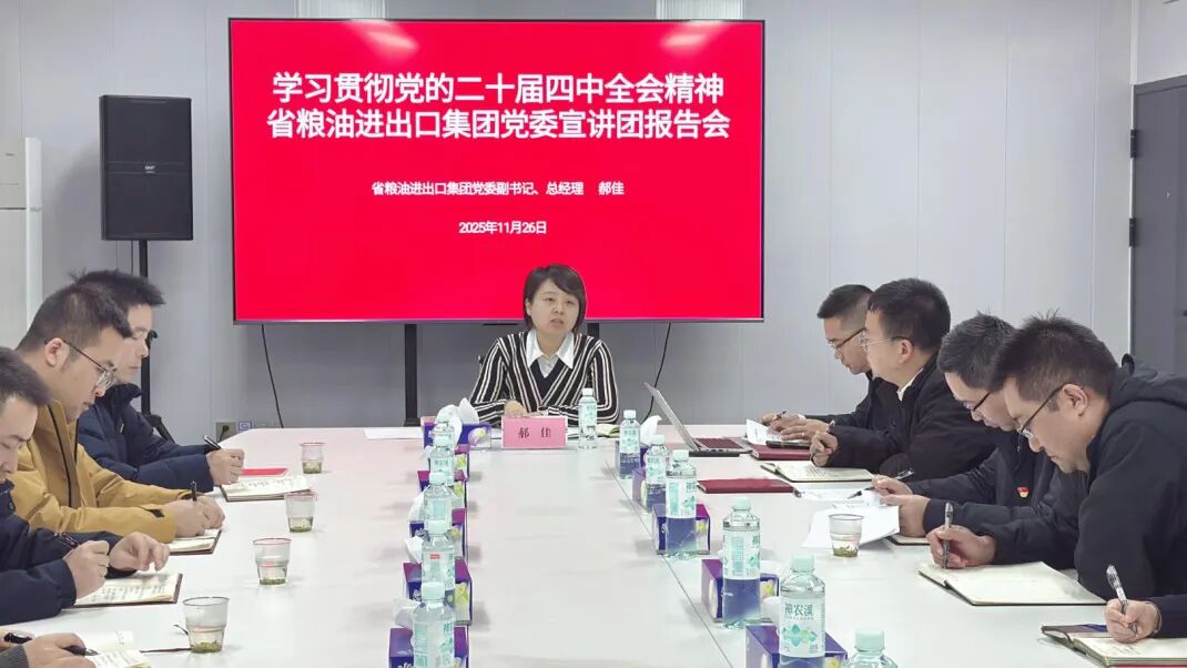 為持續(xù)推進(jìn)黨的二十屆四中全會(huì)精神學(xué)習(xí)宣傳貫徹工作走深走實(shí),按照湖北農(nóng)發(fā)集團(tuán)黨委統(tǒng)一部署,省糧油進(jìn)出口集團(tuán)扎實(shí)推進(jìn)學(xué)習(xí)貫徹全會(huì)精神,深刻領(lǐng)悟全會(huì)的重大意義、核心要義與實(shí)踐要求,在全集團(tuán)范圍內(nèi)形成了學(xué)精神、悟思想、擔(dān)使命、促發(fā)展的濃厚氛圍。