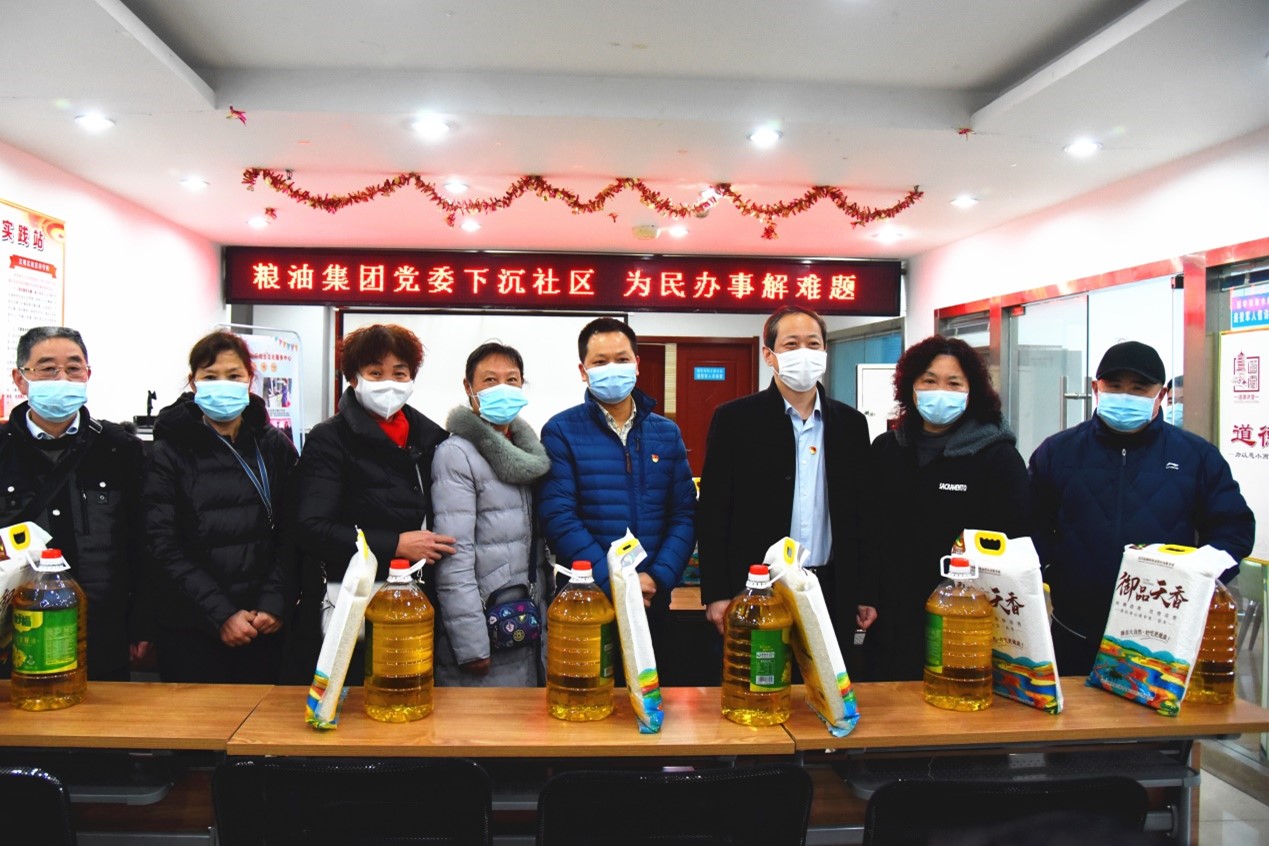 2021年1月29日,糧油集團(tuán)黨委書記、董事長周勇,黨委委員、總經(jīng)理宛三林走進(jìn)取水樓社區(qū),開展2021年春節(jié)慰問社區(qū)困難群眾活動(dòng),為困難居民們送去米、油等慰問物資和節(jié)日祝福。