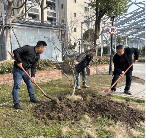 植樹現(xiàn)場,大家干勁十足,揮鍬挖土、鋪設(shè)草坪、培土灑水,用心種下每一顆新苗,以實(shí)際行動踐行“綠水青山就是青山銀山”的生態(tài)文明理念,為良友紅坊園區(qū)增添了一片生機(jī)勃勃的綠色。