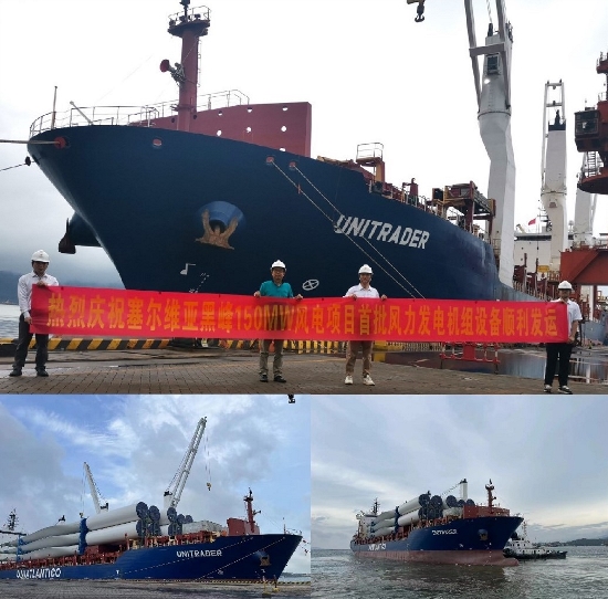 近期,塞尔(er)维亚150MW黑峰风(feng)电(dian)项(xiang)目首批风(feng)力发(fa)电(dian)机组(zu)成功(gong)装船起运。
