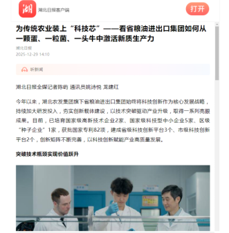 湖北日報:為傳統(tǒng)農(nóng)業(yè)裝上“科技芯”——看省糧油進(jìn)出口集團(tuán)如何從一顆蛋、一粒菌、一頭牛中激活新質(zhì)生產(chǎn)力