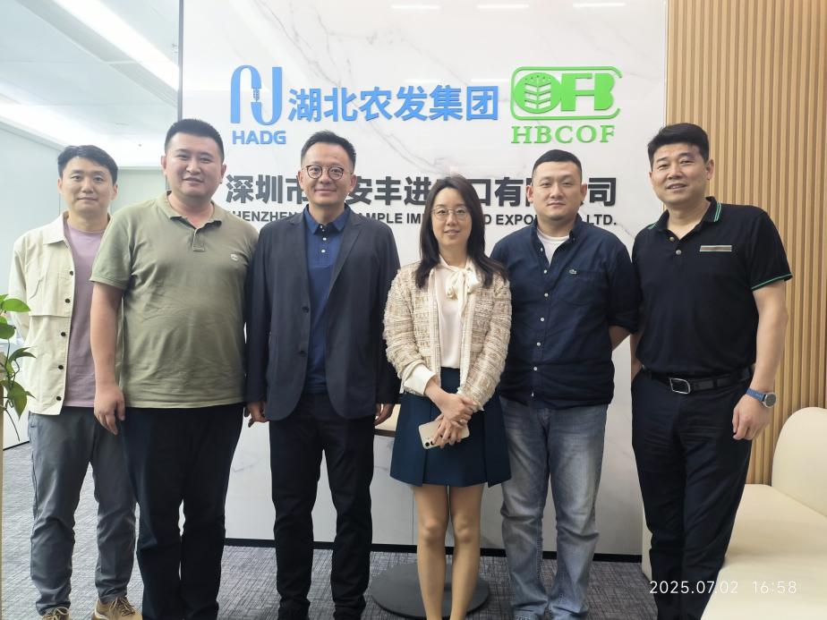 7月2日,華潤五豐香港事業(yè)部總經(jīng)理、五豐行有限公司總經(jīng)理趙俊一行到訪匯安豐公司,與省糧油進(jìn)出口集團市場總監(jiān)齊翔座談交流。雙方圍繞助力湖北優(yōu)質(zhì)農(nóng)副產(chǎn)品進(jìn)灣到港等業(yè)務(wù)展開深入交流。