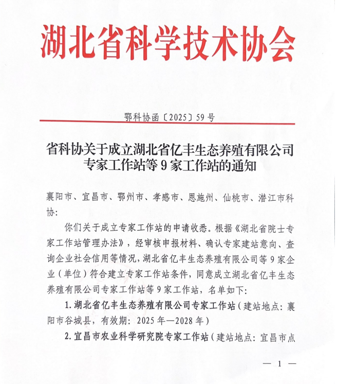 喜報(bào)!湖北省億豐生態(tài)養(yǎng)殖有限公司專(zhuān)家工作站成功獲批